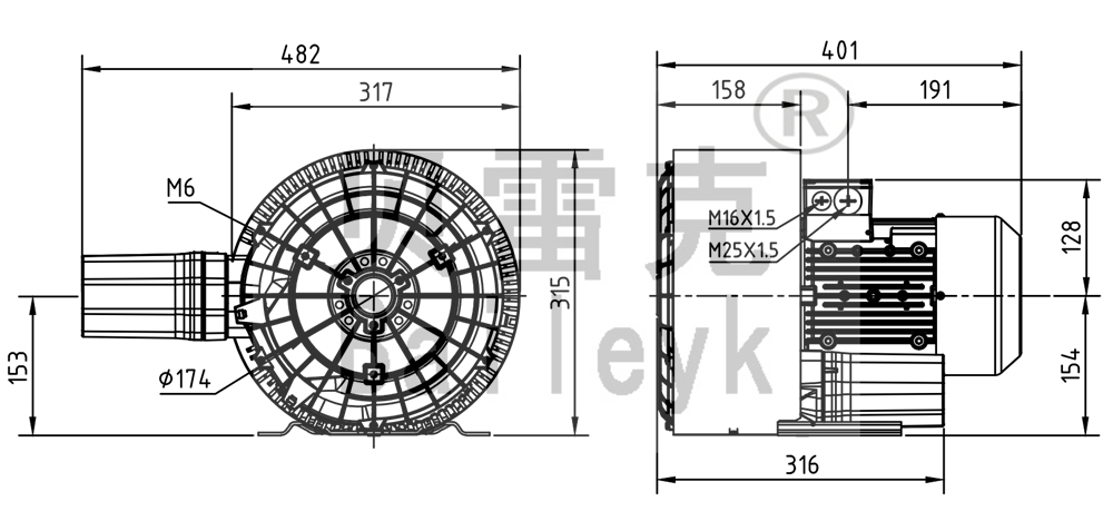 最大風(fēng)量:150m3/h 最大正壓:420mbar 最大負(fù)壓:330mbar 防護(hù)等級(jí):IP55 噪音:66db 重量:27Kg