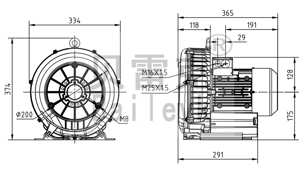 最大風(fēng)量:270m3/h 最大正壓:150mbar 最大負(fù)壓:160mbar 防護(hù)等級:IP55 噪音:65db 重量:24Kg